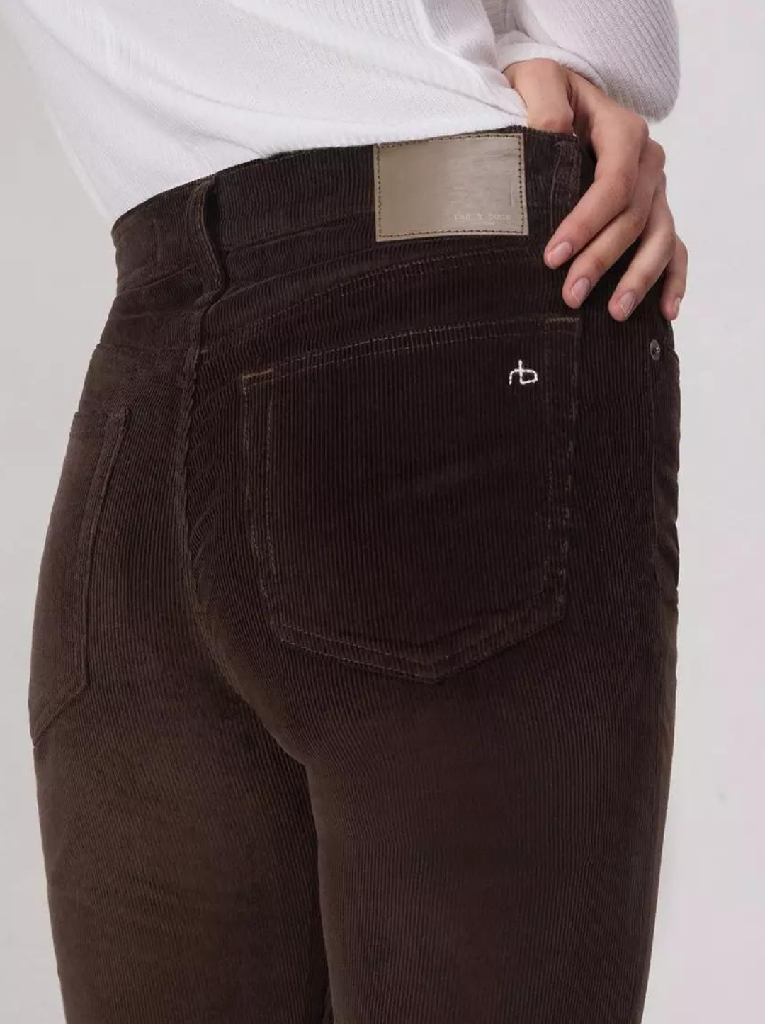 The Peyton. Our modern take on the timeless mid-rise bootcut with a slim fit through the thigh and a subtly flared hem. Crafted from corduroy that smooths, sculpts, and stretches for ultimate comfort. In Dark Brown with a clean hem.
