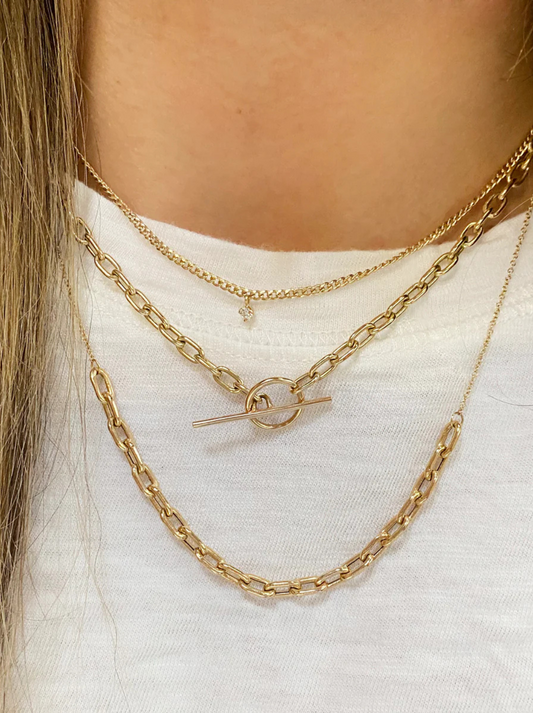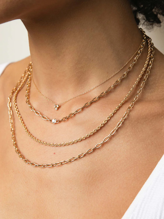 14k Prong Diamond Extra Small Curb Chain Necklace