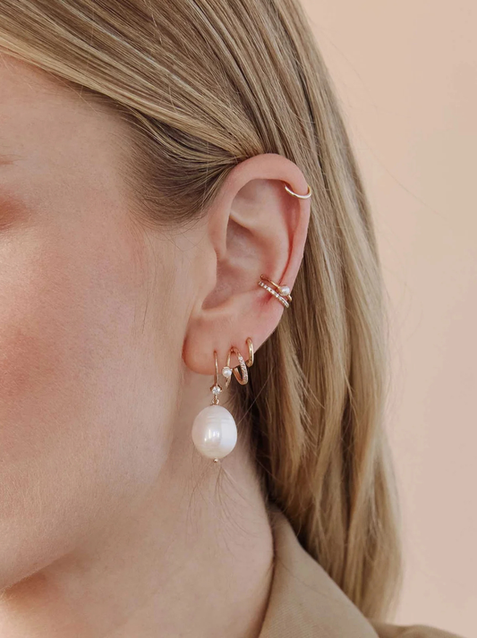 14k Prong Diamond & Baroque Pearl Wire Earrings