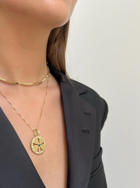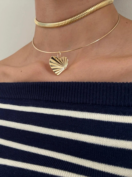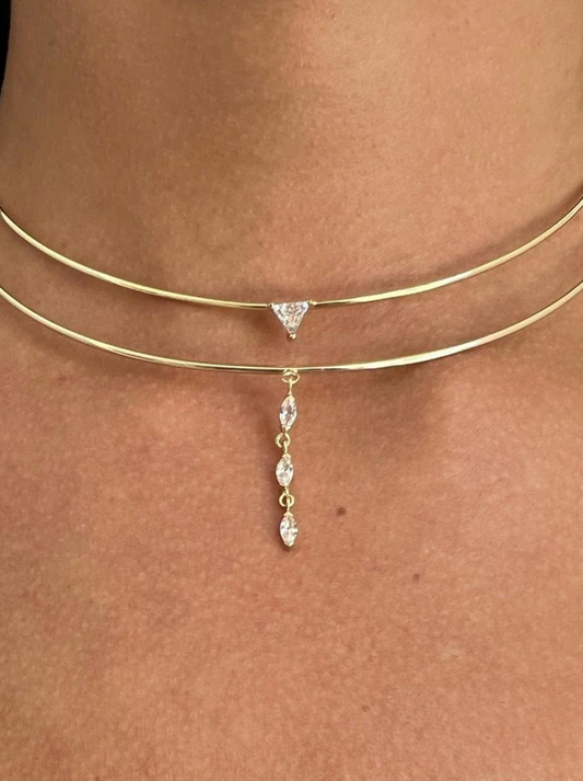 14k Mini Collar w/ Flush Set Diamond Pendant Neckklace