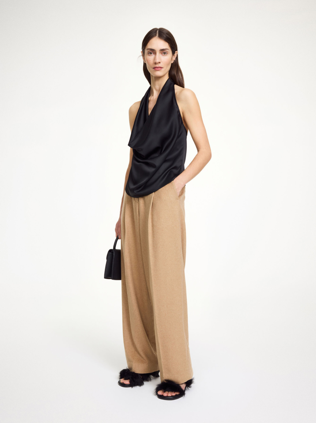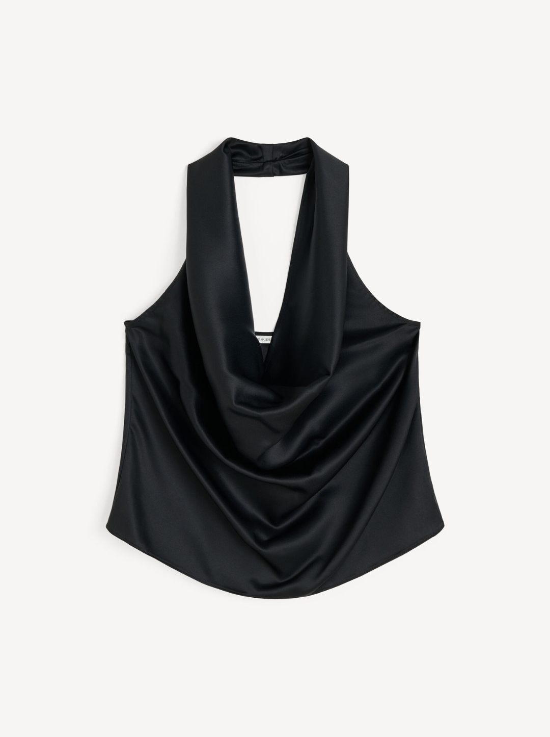 Draping the body in a way that feels almost intimate, the Charlotte top is made in a delicate satin mix. Falling from a halterneck to a deep draped neckline and with a low back, it’s made for the after-hours.