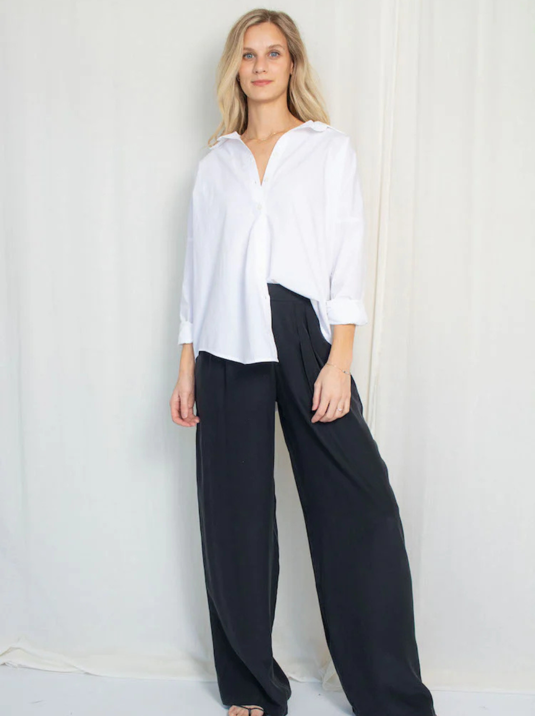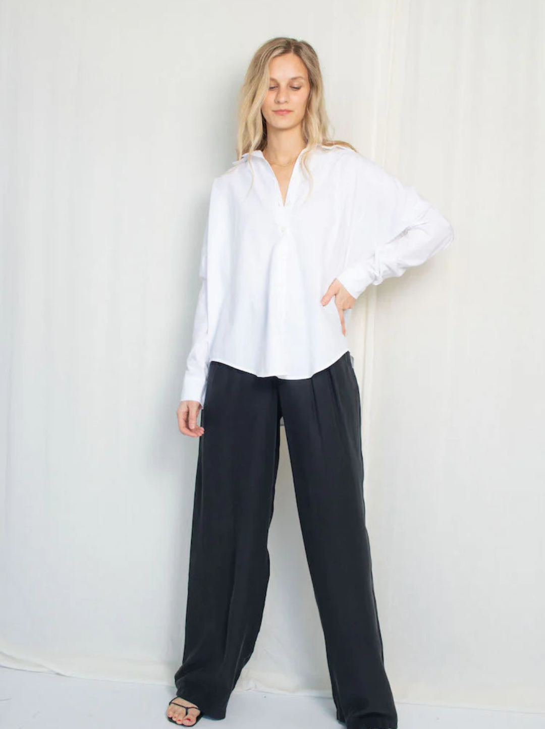 The Scoop: A wardrobe staple beyond all others, our Closet Hero. A classic silhouette with single button cuffs and a front button closure. The perfect piece for layering, now made in cotton poplin.