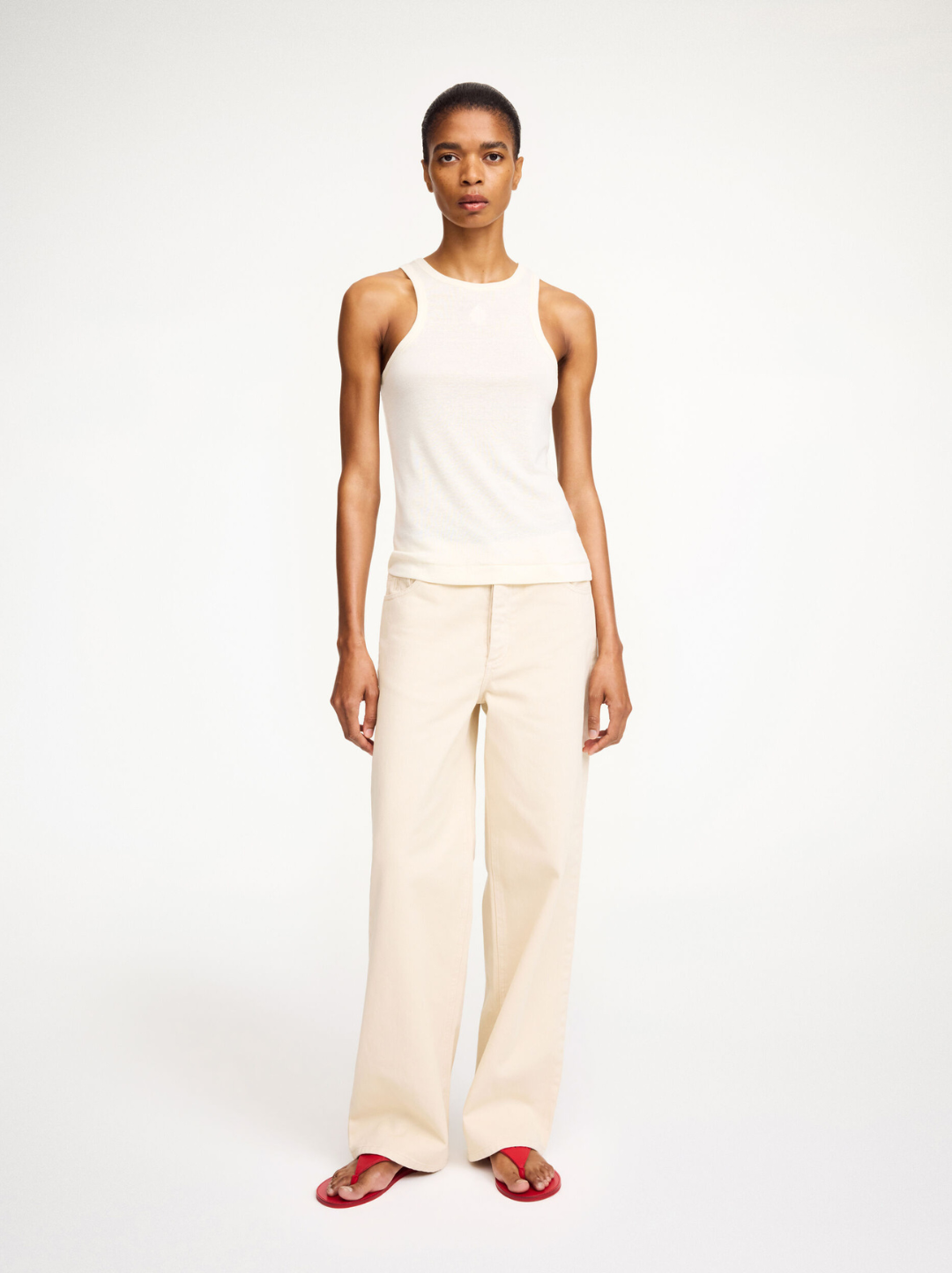 A versatile and timeless staple, the Lise tank top is made in a breathable and slightly sheer fabrication. Designed with a racer front and back, it’s decorated with a distinct monogram right on the chest. Wear as a layering piece as spring beckons or on its own in summer.