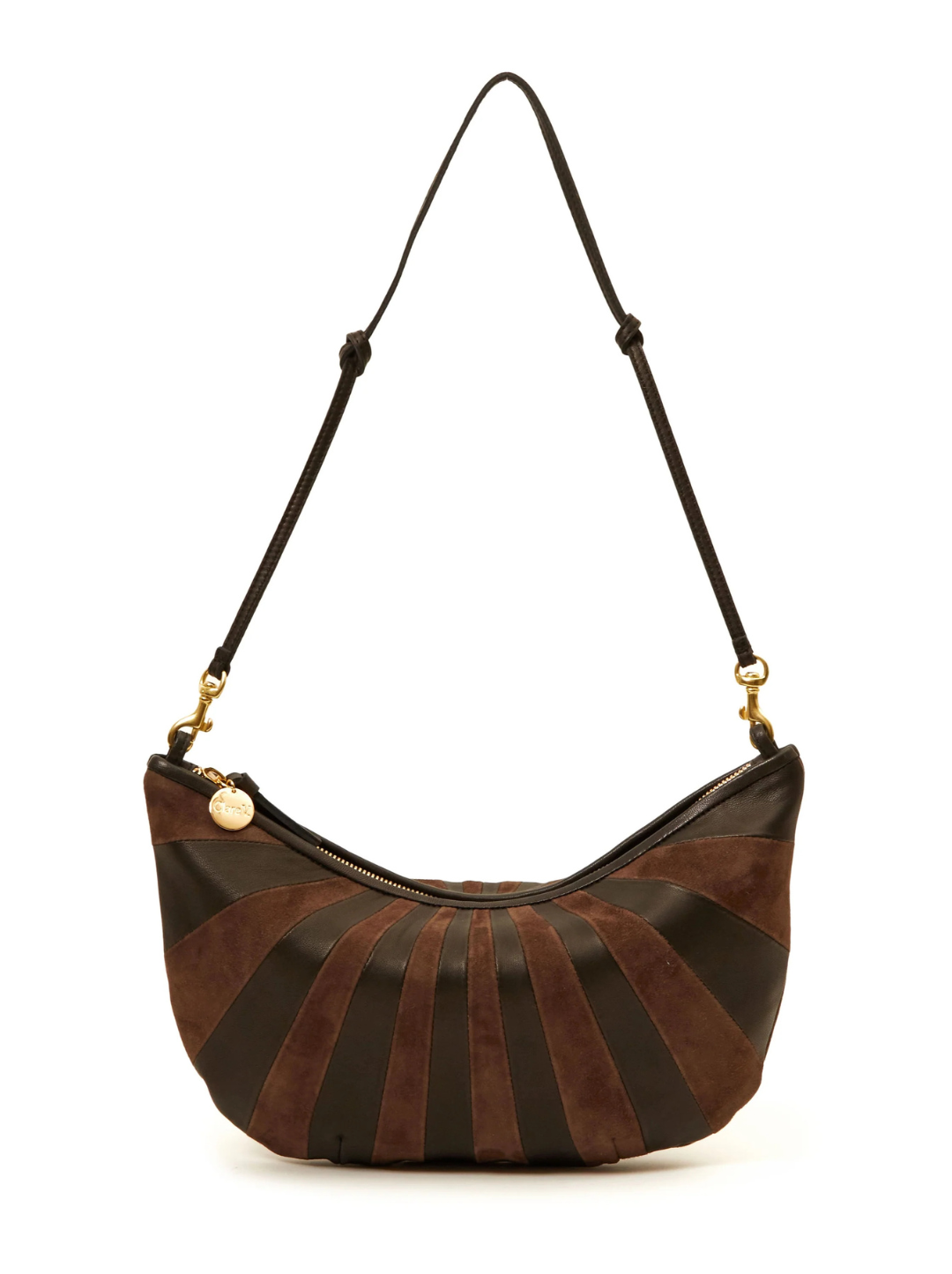 A perfect crescent shaped bag for all your everyday essentials. In a beautiful rich feeling sueded and nappa leather combination that features a zip closure and knotted shoulder strap.