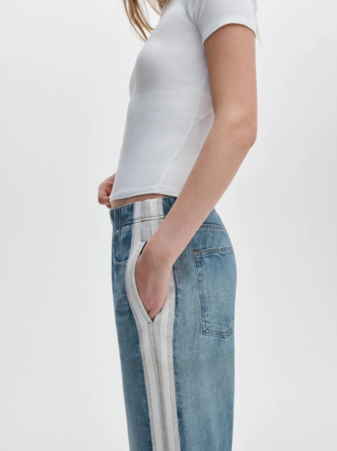Miramar, our revolutionary printing technique, makes any material look like denim. These wide-leg pants are cut and sewn from cotton terry cloth that's ultra-soft on the inside and printed on the outside to look like your favorite jeans. Featuring a pull-on elastic waistband and side seam pockets, the mid-rise style further achieves its comfortable fit and feel with the other denim details digitally printed on the fabric.