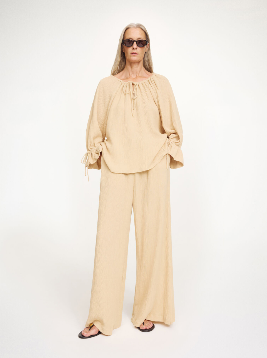 Eclectic and easy to wear, such is the Rose Weave blouse. With its lush collar, deep V-neck and adjustable ties, it’s wearable for numerous occasions – and seasons. Wear with the matching Pisca Weave trousers.